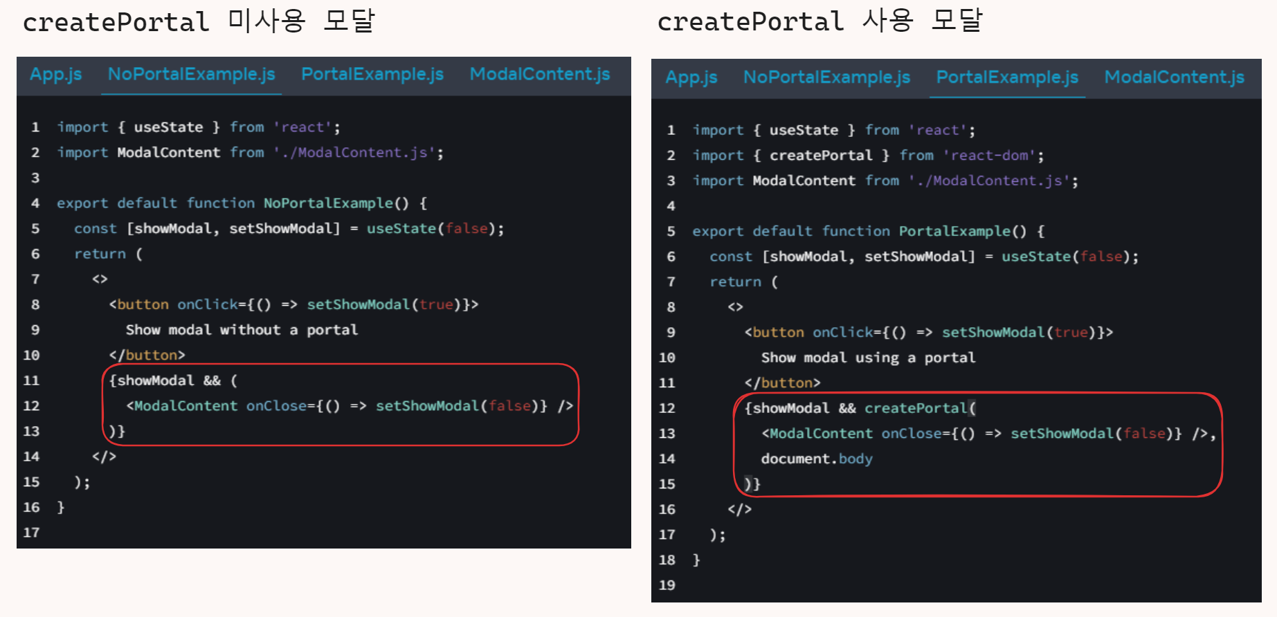 - React로 모달을 만드는 경우 비교