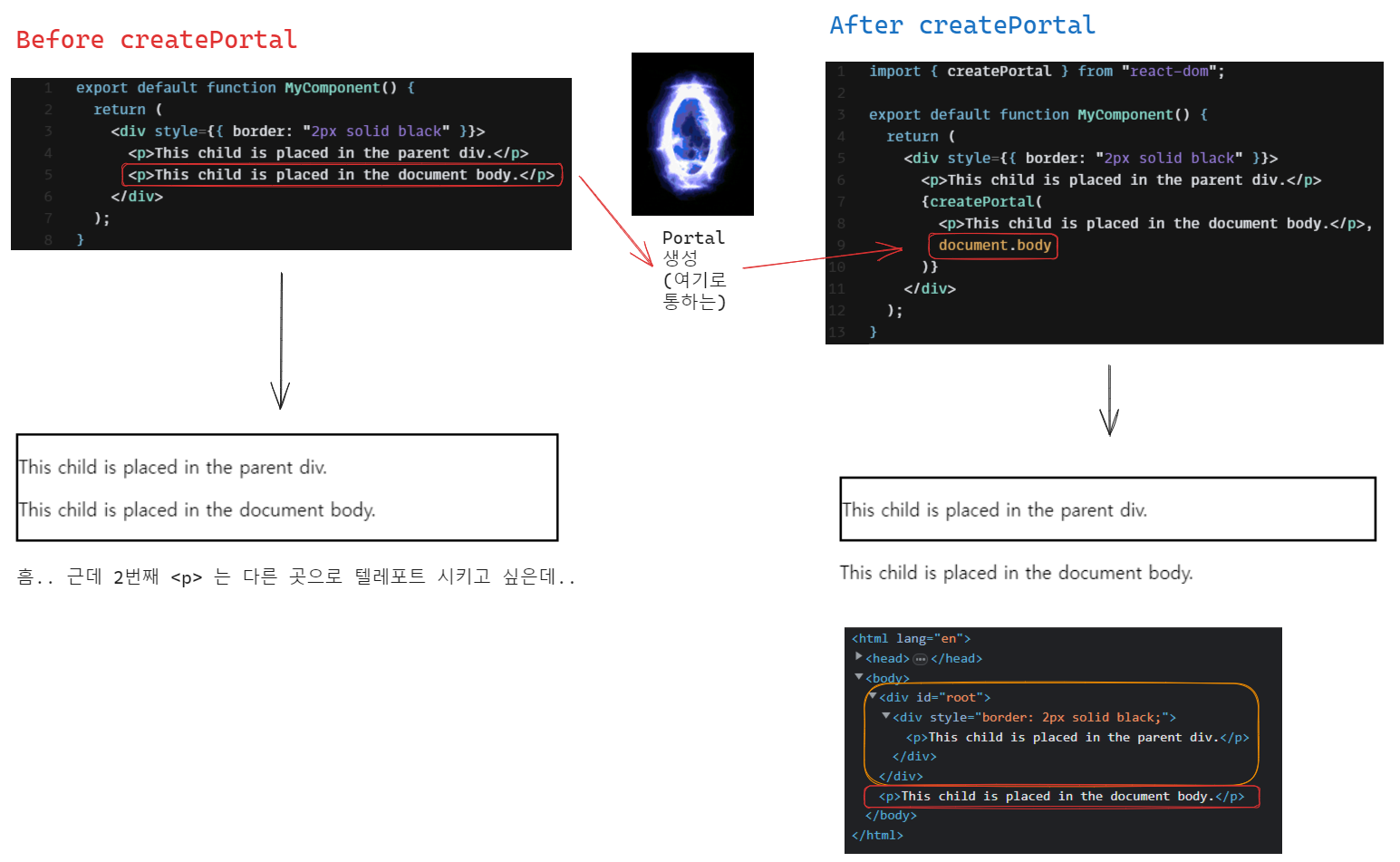 ⭐이 때, 포털로 텔레포트 시키는 JSX는,
