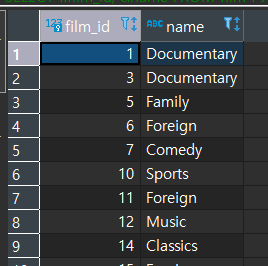 film_id와 함께 카테고리명도 같이 출력해본다.